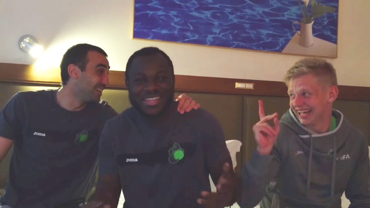Украинец Александр Зинченко и Николай Сафрониди учат петь ганца Эммануэля Фримпонга шлягер Михаила Круга "Владимирский централ". Смотрите также: Зинченко спел "Червону Руту" в России с другими выходцами "Шахтера"