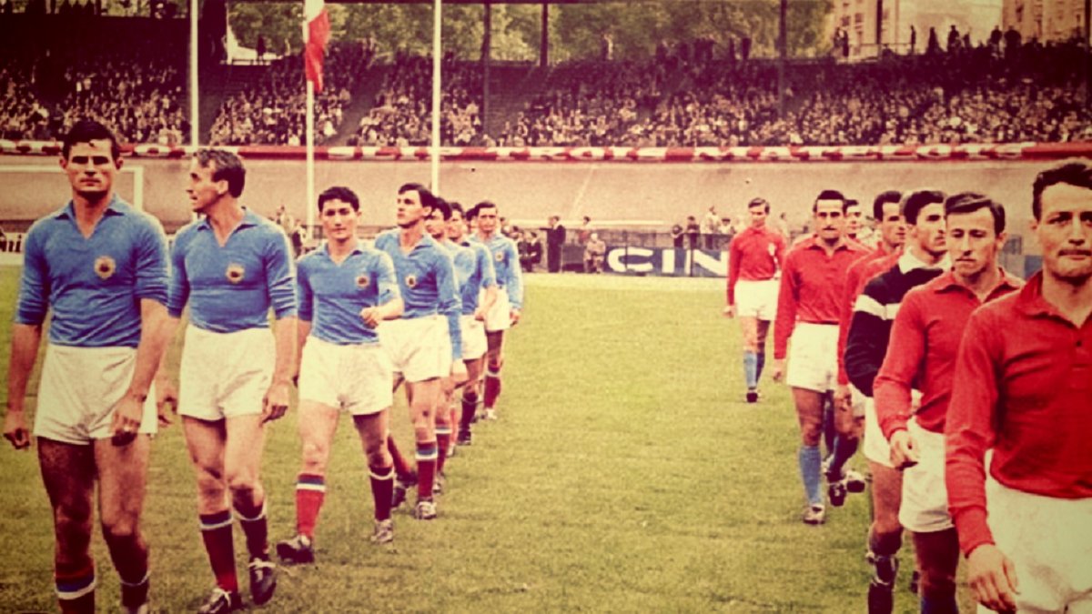 11. Шосте липня 1960 року. Півфінал першого в історії чемпіонату Європи. На газон Парк де Пренс виходять збірні Югославії (ліворуч) та Франції. Французи вели після першого тайму (2:1), але не вистояли у шаленій перестрілці, поступившись 4:5.
