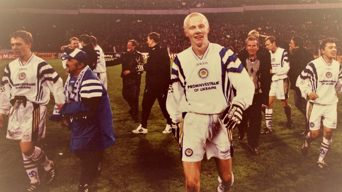 21. Сезон 1997/98 став прологом до ще більшого успіху Динамо в Лізі чемпіонів. На передньому плані – Андрій Гусін. Обабіч Сергію Реброву важко уникнути нав'язливого суперфана Парамона. Позаду – Юрій Калітвінцев, Олександр Головко, Віталій Косовський. Яка команда!