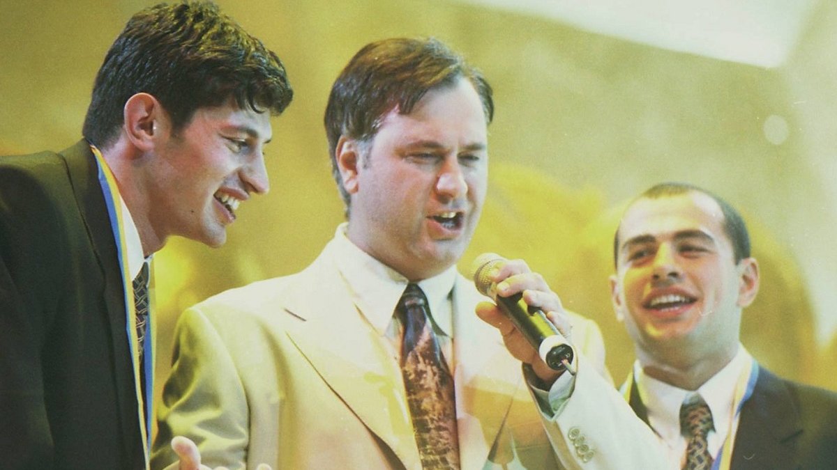 12. Київське Динамо святкує золоті медалі Вищої ліги (або, ймовірно, здобуття Кубка України) у 2000 році. На сцені запалює грузинське тріо – Каладзе, Меладзе і Деметрадзе.