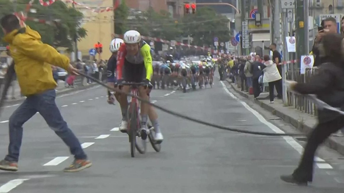 15 мая в Неаполе два человека выбежали перед гонщиками, которые оторвались от пелотона и попытались перегородить им дорогу, сообщает CyclingPro. Впрочем, с первого раза у них это не получилось, после чего протестующие попытались выбежать на трассу, когда мимо них проезжал пелотон.