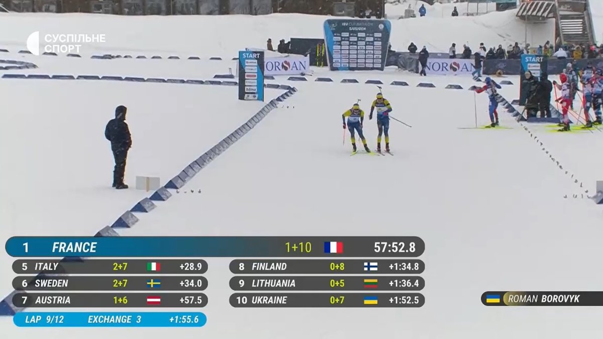 Тищенко привел "сине-желтых" на финиш первого этапа шестым. Насико на втором этапе совершил, казалось бы, невероятное – поднял команду на вторую позицию. Украинцы уступали лишь чехам, но удержать позиции им не удалось. Боровик на своем этапе выступил откровенно провально: после первой стрельбы он был уже шестым, а после второй – девятым. Цымбал на завершающем этапе временно имел восьмую позицию, а все же финишировал девятым.