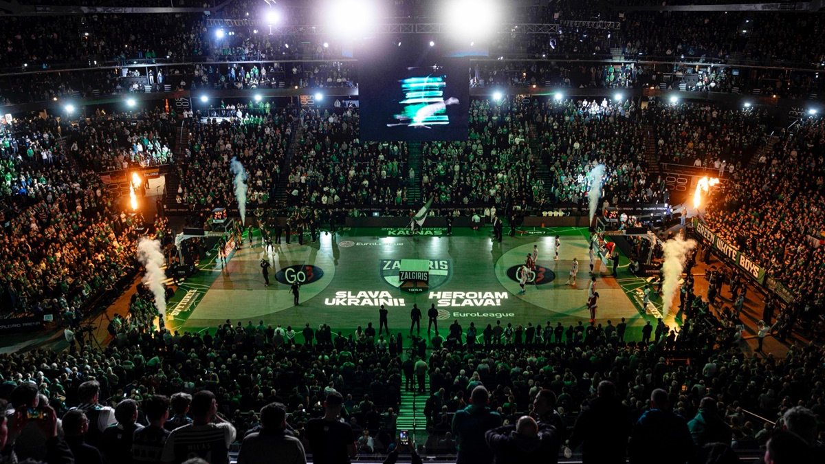 Во время встречи клуб из Вильнюса, воспользовавшись паузой в игре, вывел на паркет арены надпись "Слава Украине! Героям слава!" Фанаты Жальгириса поддержали акцию мощным сканированием "Украина! Украина!" Вспомнили они и о главе Кремля.