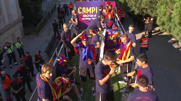 Празднование продолжалось не один час и завершилось на "Камп Ноу", куда пришли 70 тысяч человек. Интересно, что в каталонской святыни осталось 30 тысяч пустых мест.
