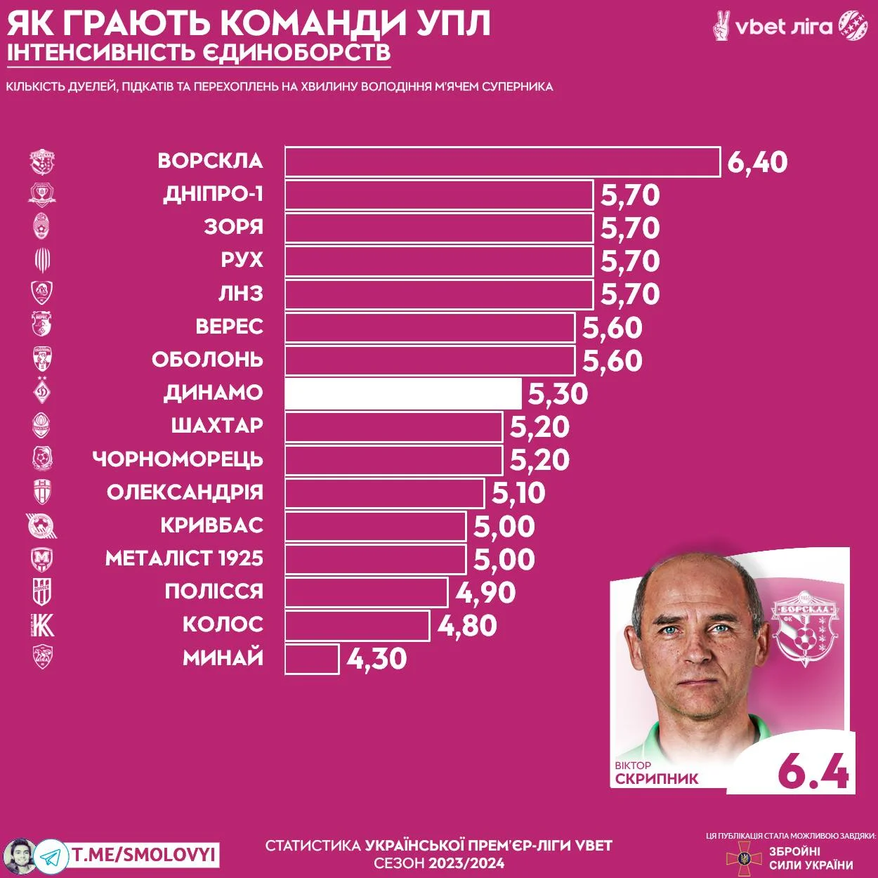 Правда, команды не хватает на весь матч. Проблема кроется в чрезвычайно высокой интенсивности игры без мяча – полтавчане имеют самое высокое количество дуэлей, перехватов и подкатов за минуту владения соперником. Причем за последние недели этот показатель вырос на 0,3.