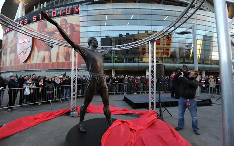 Особенно впечатляет памятник Бергкампу, который - точная копия момента из 2003 года, когда в матче против "Ньюкасла" "Летучий голландец" мастерски укротил мяч в полете.