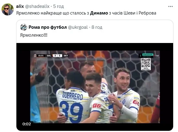 Телеграм-канал What a goal: навіть без забитих м'ячів Ярмоленко – найкращий.