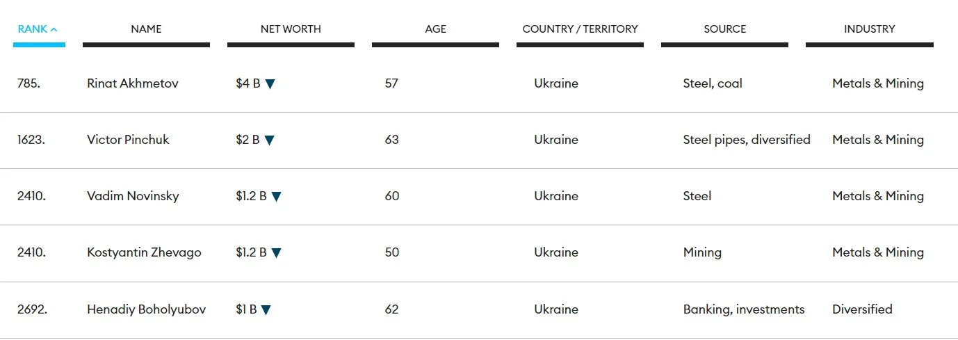 Ринат Ахметов остается первым среди украинцев и 785-м в общем рейтинге. Правда, президент Шахтера существенно обеднел – "всего" 4 млрд долларов после 5,7 млрд в 2023 году. Forbes предоставляет статус долларовых миллиардеров еще 4 украинцам. Это Виктор Пинчук, Вадим Новинский (экс-президент Севастополя), Константин Жеваго (почетный президент Ворсклы) и Геннадий Боголюбов.
