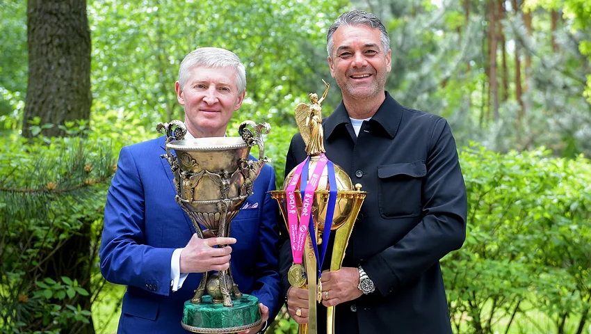 Владелец Шахтера Ринат Ахметов лично поздравил директоров клуба и наставника команды с золотым дублем сезона 2023/24.