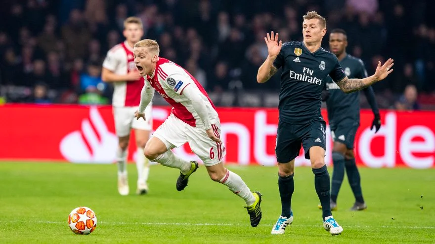 Ван Де Беек блокирует Каземиро, Аякс спокойно давит на Модрича и отбирает мяч