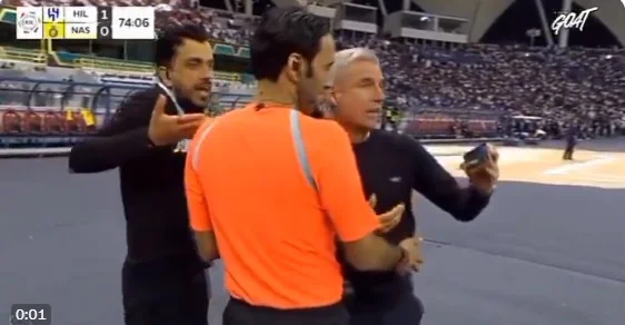 Рулевой Аль-Насра Луиш Каштру пихал четвертому рефери собственный телефон для просмотра повтора. Не сработало.