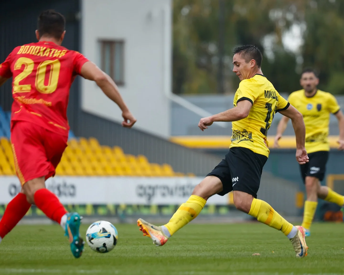 В середине тайма Мартынюк наносил пушечный удар с дальней дистанции в левый угол – Паламарчук чудом успел выставить ногу и перевести на угловой. Впоследствии Джованни ворвался в штрафную и мощно пробил с острого угла – кипер петровцев перевел на угловой. Козак правым флангом протащил мяч к воротам соперника и прострелил – Кулаков опередил защитников и... не попал в пустые ворота.