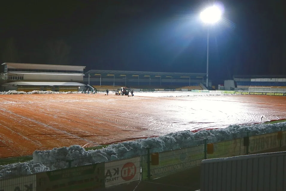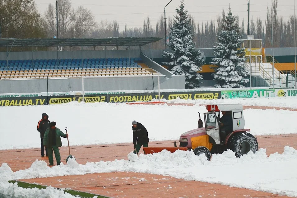 В течение 20 часов продолжалась борьба работников стадиона со снегом и завершилась победой александрийцев.