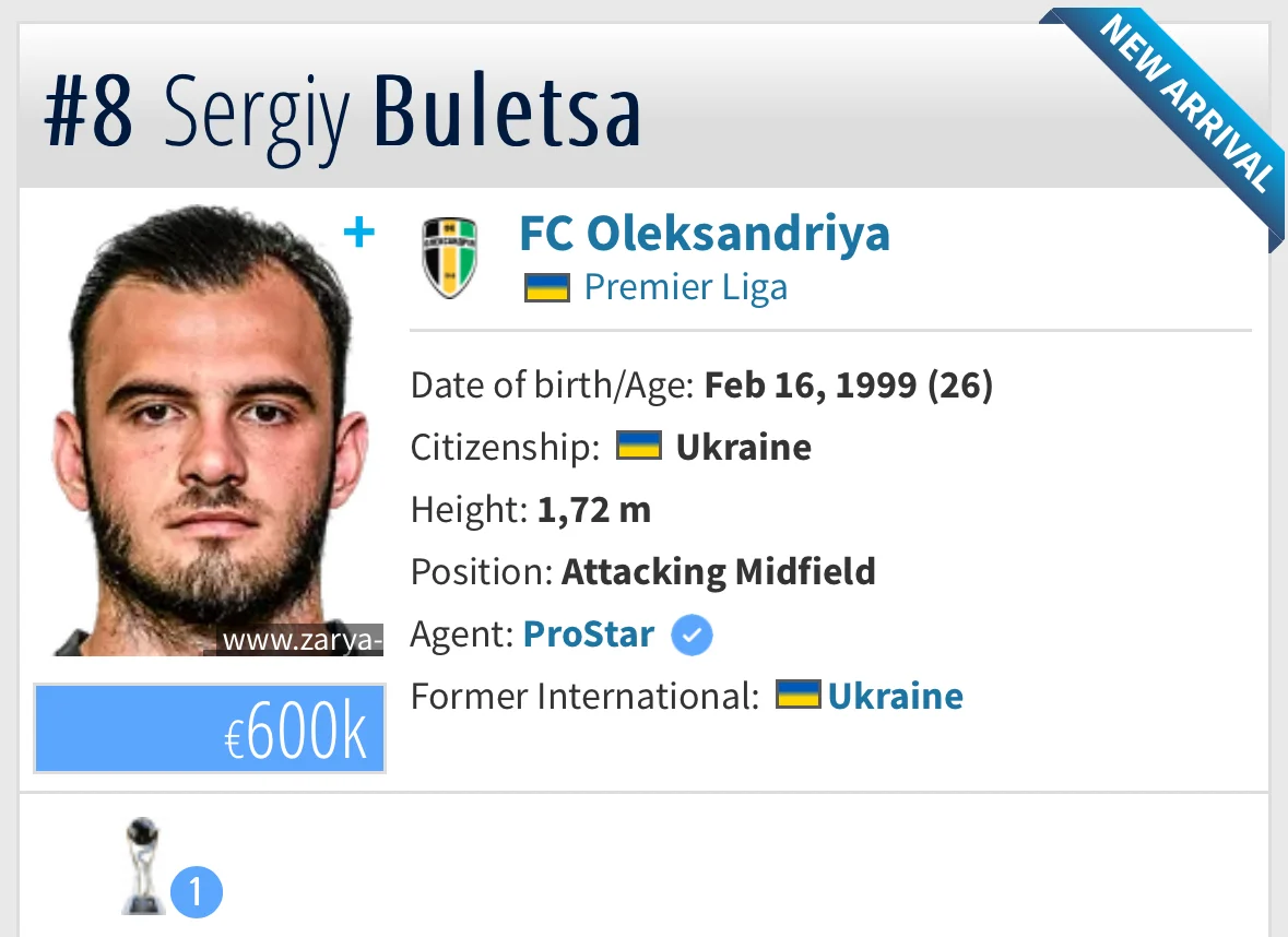 Один из лидеров УПЛ оформил полноценный контракт с Сергеем Булецой, сообщает Тransfermark.