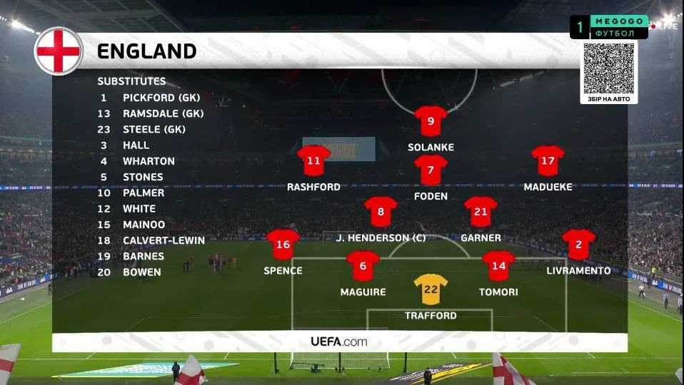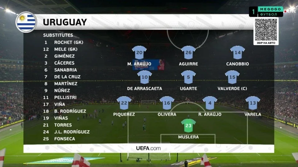 Первая сорокапятиминутка была перенасыщена стандартами и верховой борьбой. Опасность в сборной Англии создавал преимущественно Харри Магуайр во время угловых. Лишь на 40-й минуте партнеры вывели на ударную позицию Федерико Вальверде, но защита "Трех львов" заблокировала пушечный выстрел звезды Реала.