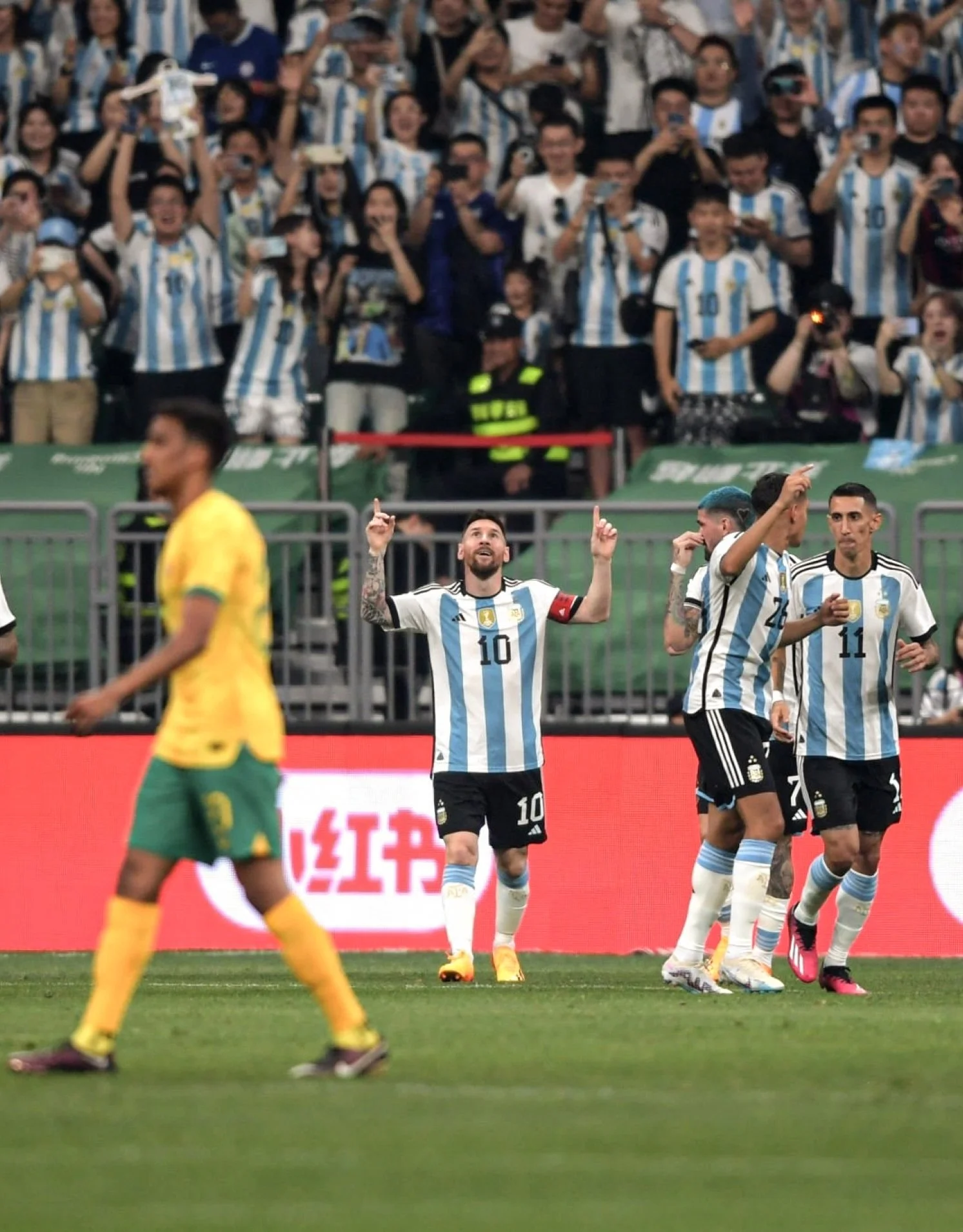 Если 6 месяцев назад "Соккеруз" продержались 35 минут и в конце концов уступили 1:2, то в Пекине аргентинцам удалось забить быстрый гол. Энцо перехватил мяч в центре поля, нашел Месси, а тот разобрался, как в старые добрые времена. Качнул нескольких соперников на линии штрафной и красиво закрутил под стойку. Лучший бомбардир в истории "fльбиселестес" оформил свой 103-й мяч за национальную сборную. Месси в порядке, Бекхэм доволен...