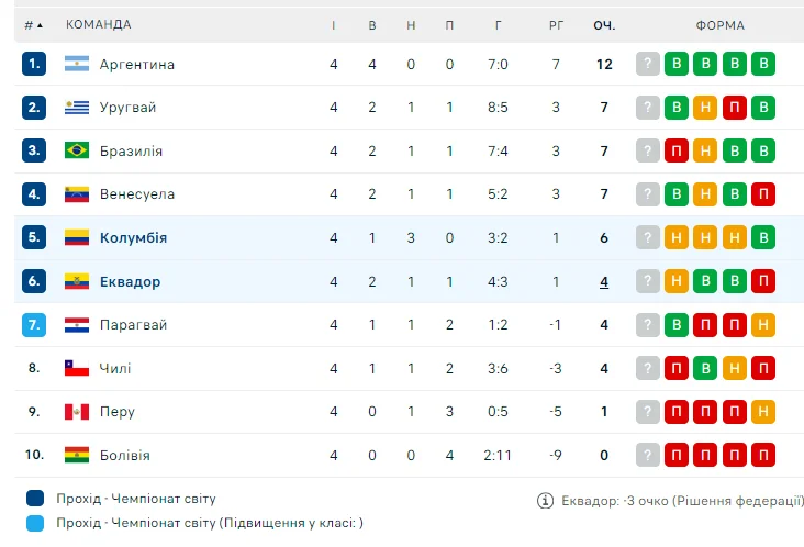 В еще двух матчах Парагвай минимально обыграл Боливию, а Колумбия расписала безголевую ничью с Эквадором, потеряв 100%-ный шанс взять три очка (Луис Диас из Ливерпуля не смог с пенальти переиграть голкипера).