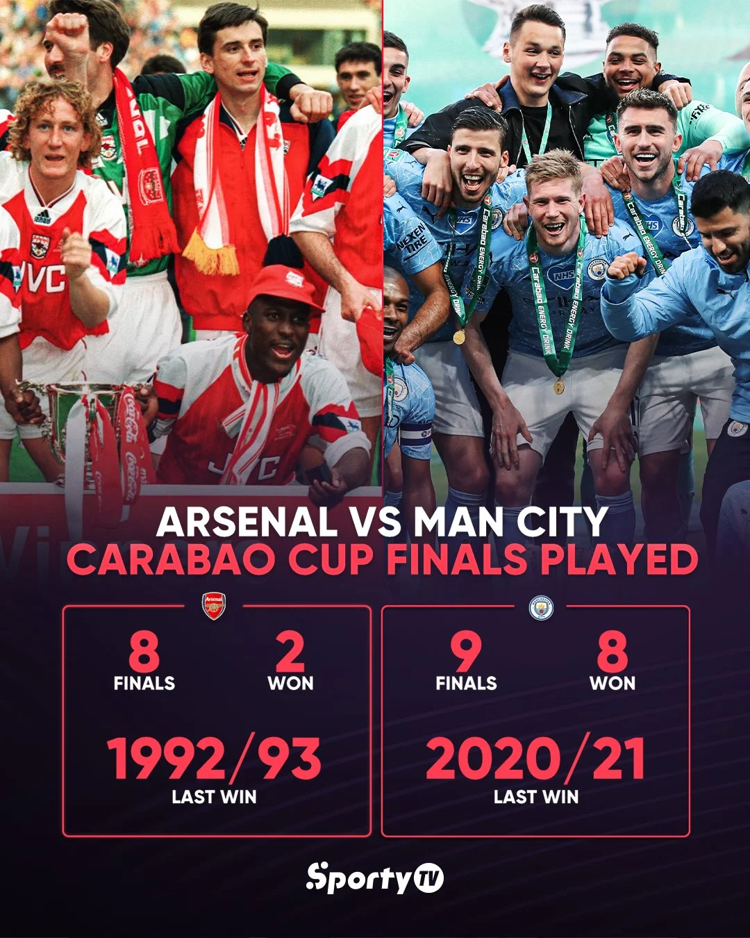 "Горожане" добывали этот трофей 8 раз – лишь у Ливерпуля больше (10 титулов). А вот у Арсенала в коллекции только 2 Кубка лиги, последний был завоеван еще в далеком 1993 году. "Канониры" 6 раз проигрывали в финале этого турнира, а потому Артете очень нужно снять это проклятие.