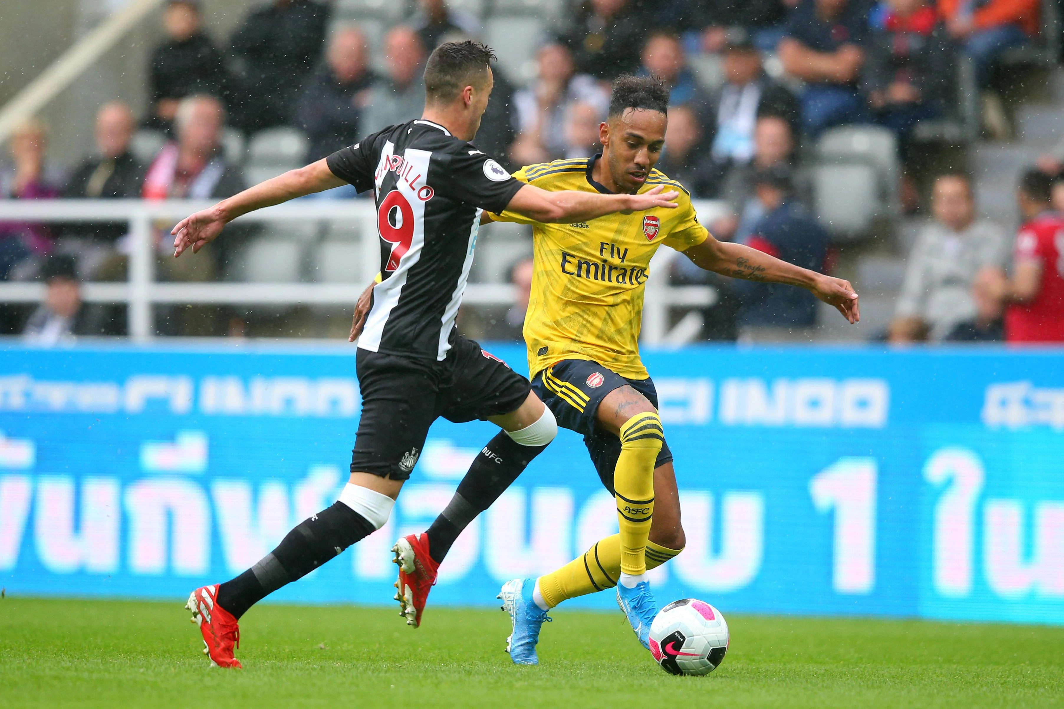 Арсенал начинал новый сезон матчем в Ньюкасле, который встретил "канониров" проливным дождём. Как следствие, первый тайм оказался очень трудным для просмотра: команды не могли поднять скоростей, а Мхитарян вообще допустил 15 потерь мяча їм больше, чем у любого другого футболиста. Впрочем, моменты были: на 21-й минуте Шелви пробил из пределов штрафной в штангу, а ещё через девять минут гости ответили выстрелом с левого края штрафной в исполнении Обамеянга – Дубравка парировал. На перерыв футболисты ушли без голов.