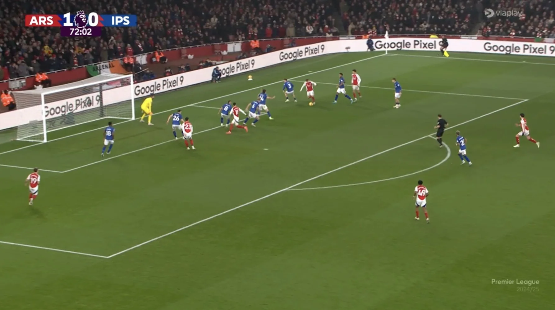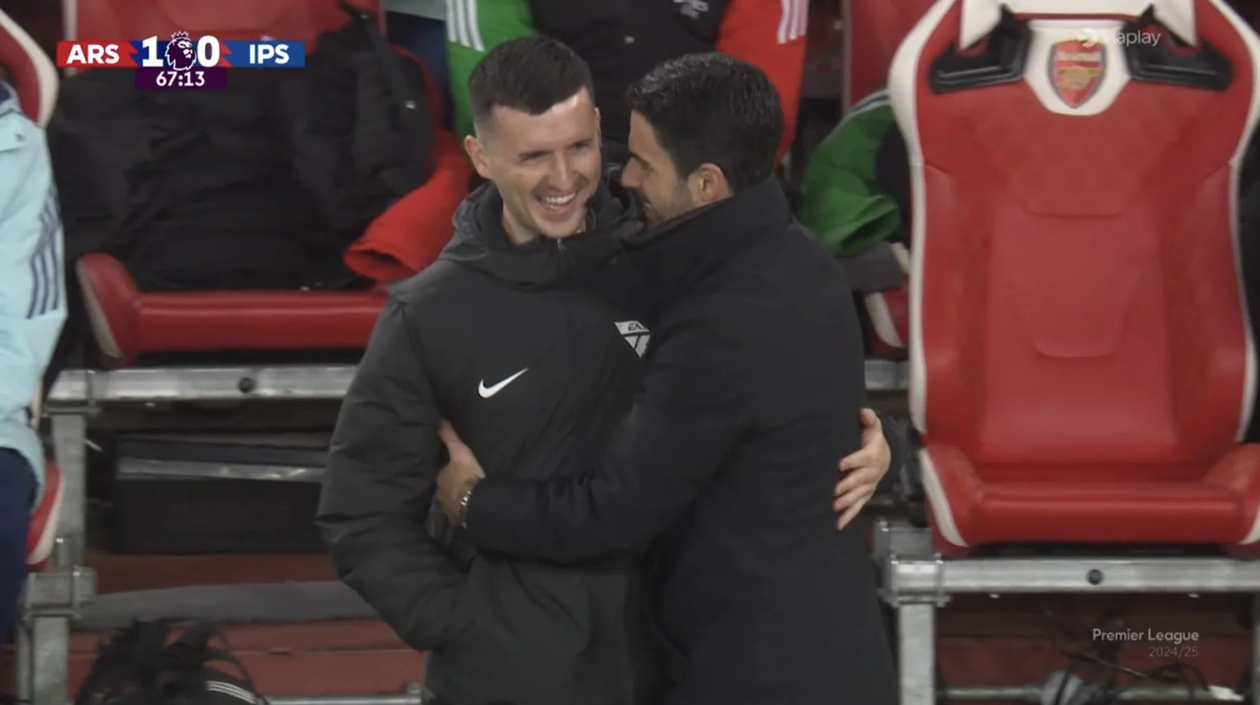 Его экс-партнер по команде – Микель Артета – оригинально отнесся к проблеме Сака. Ожидалось, что его позицию закроет Жезус, однако роль правого вингера неожиданно доверили Мартинелли. Жезус же чаще играл на позиции форварда, тогда как Хаверц опускался за мячом в опорную зону. Вместе с тем, Кай не забывал выполнять рывки из глубины, пытаясь открыться за спину защитникам Ипсвича.