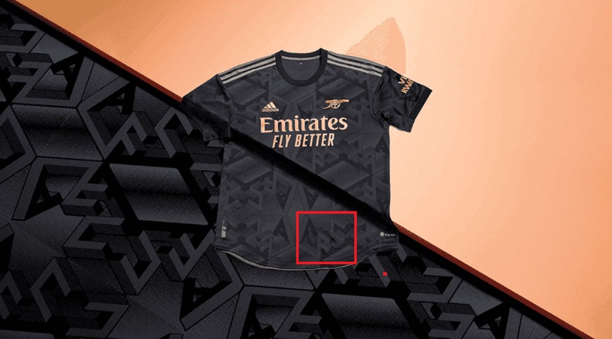Дизайн сочетает значок бронзовой пушки и бронзовые металлические элементы с оттенками черного и карбона. Вместе они демонстрируют сплошную графику AFC, вдохновленную надписью "Арсенал" – фанаты "канониров" проходят её, шагая на стадион "Эмирейтс". Таким образом футболка призвана сохранить домашнюю атмосферу, даже когда команда находится на выезде.
