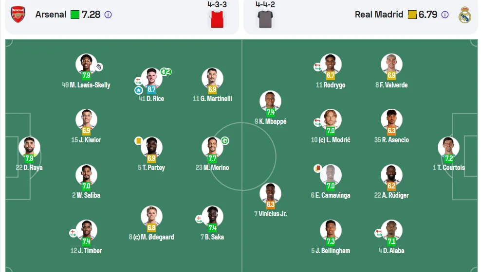 Коуч "канониров" выбрал самое простое решение, выставив Кивиора в роли левого центрального защитника. Вероятно, это было связано с желанием оставить Салиба справа, под борьбу с Мбаппе и Винисиусом. Из этих же соображений на правый фланг обороны выпустили Тимбера, хотя существовал вариант с Уайтом.