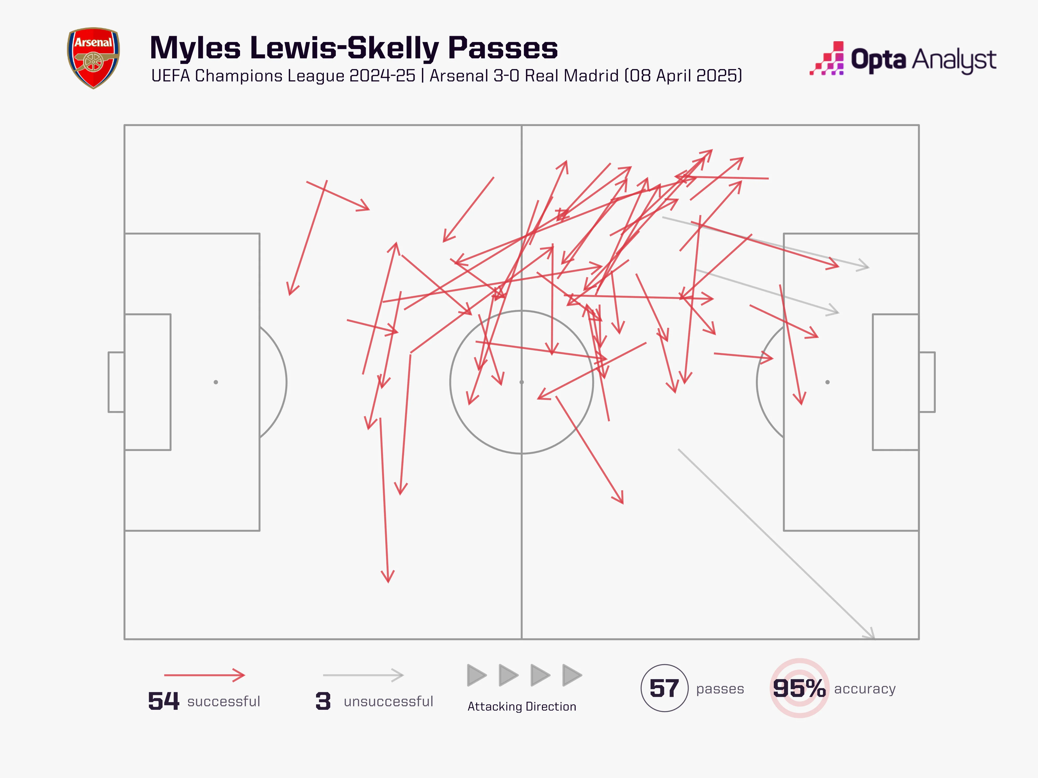 Льюис-Скелли стал лидером матча по продвижениям через пасы и стал четвертым по продвижениям на дриблинге. При этом его передачи оказались самыми острыми в поединке на Эмирейтс.