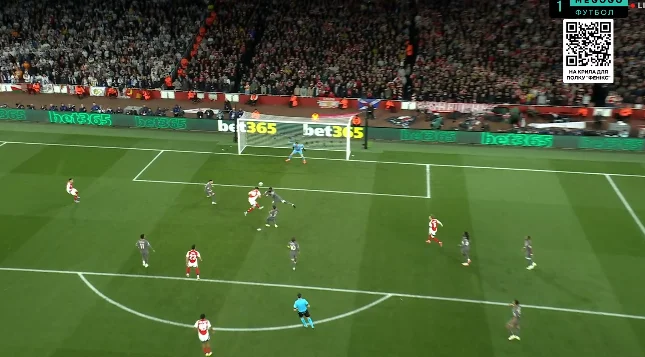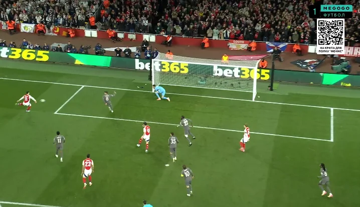 Как следствие, Арсенал не имел никаких проблем с выводом мяча из собственной трети за центр поля. Там уже игра была равной. Лондонцы ожидаемо пытались перегружать фланги – особенно правый, где творят магию Сака и Эдегор.