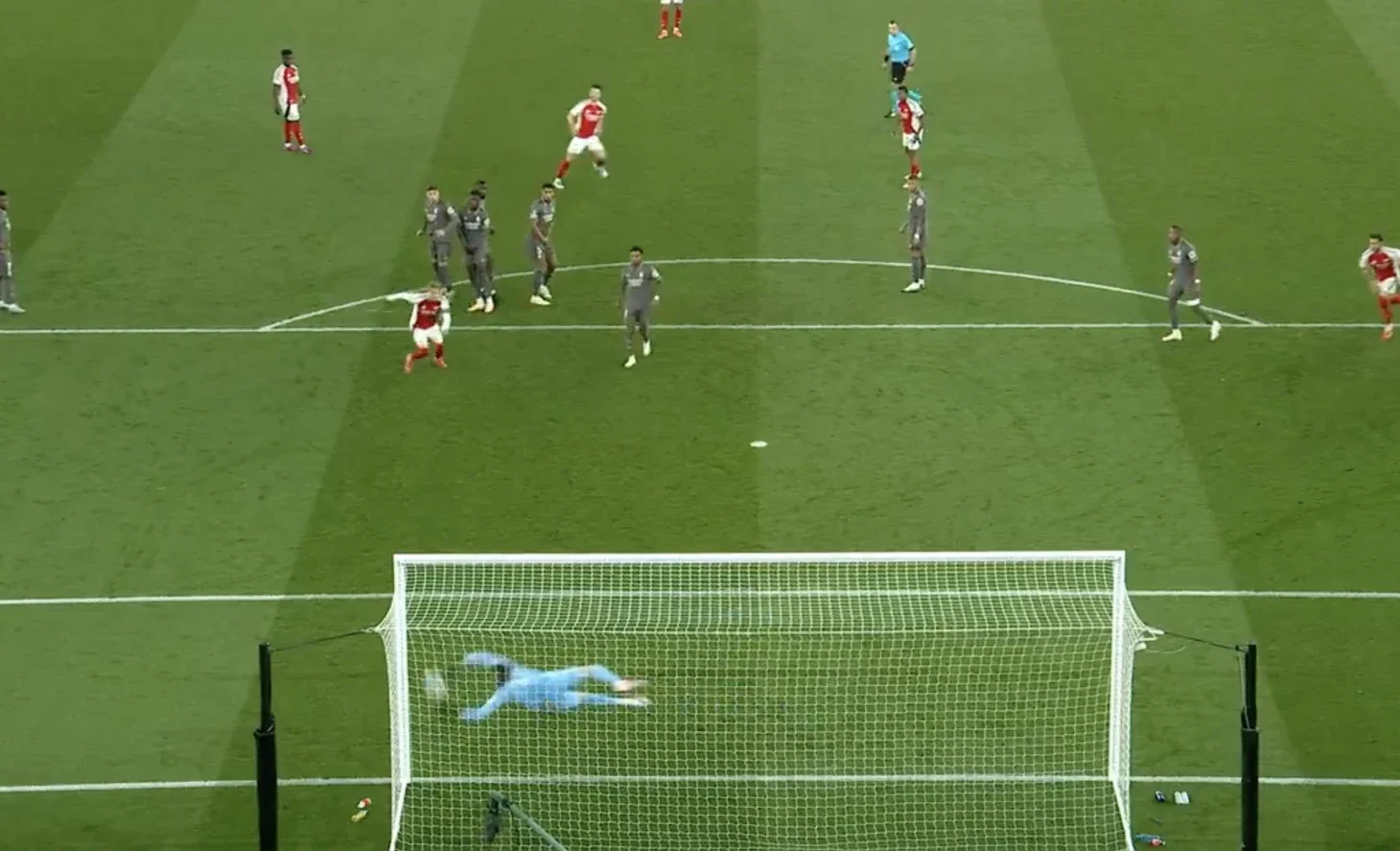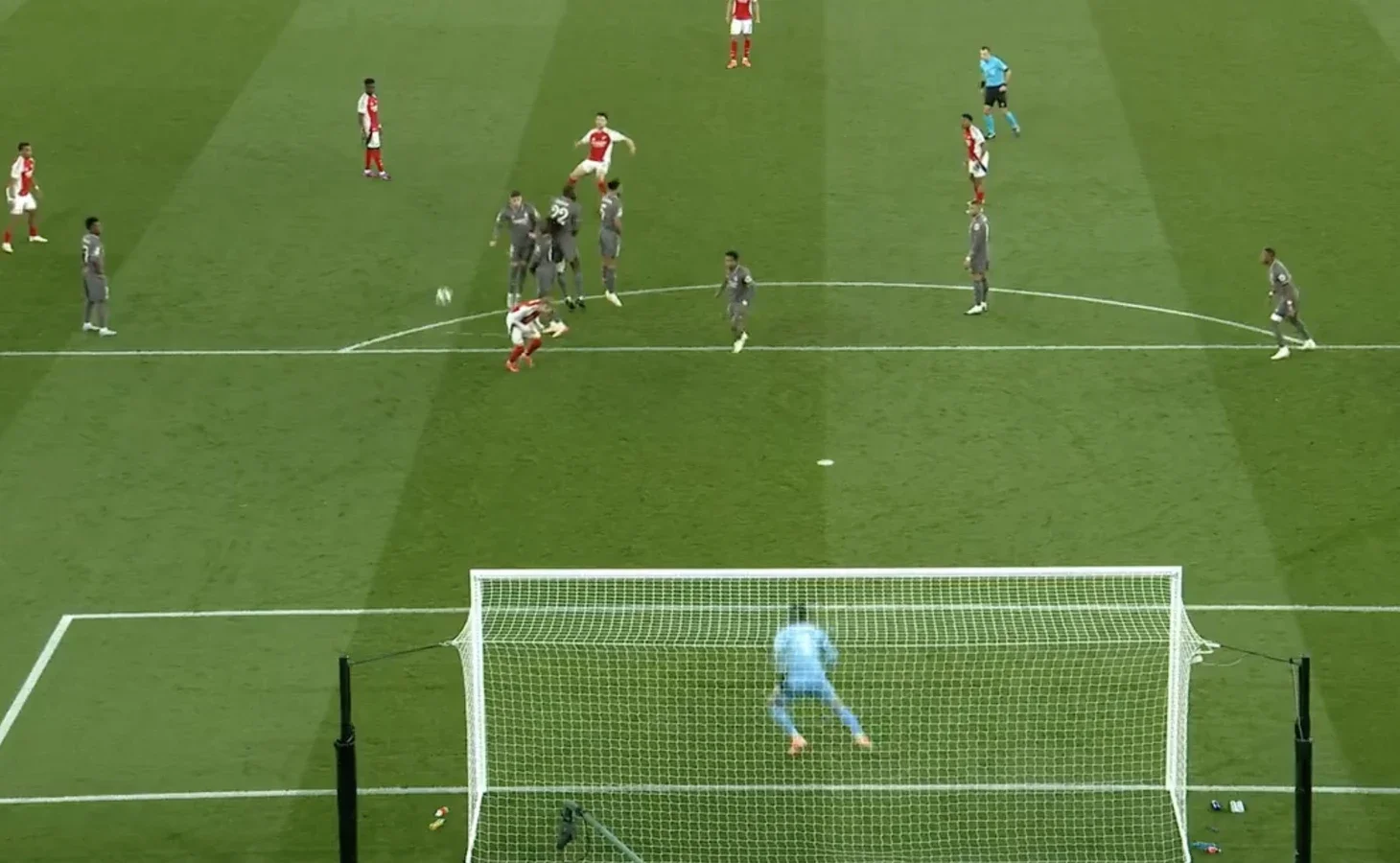 Дистанция была слишком короткой, а концовка не увеличивала площадь тела, поэтому обошлось без 11-метрового. За несколько минут до этого Сака пытался выполнить "сухой лист" с углового, однако Куртуа перевел мяч над перекладиной.