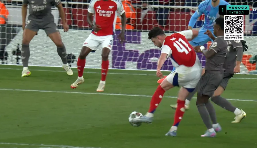 Уже на 3-й минуте Сака едва не заработал штрафной, сместившись на линию штрафной и получив по ногам от Модрича. Тот стандарт ничего не принес. А вот на 13-й минуте пришлось включаться VAR – после прострела Мартинелли с левого фланга Райс пробивал в руку Асенсио.