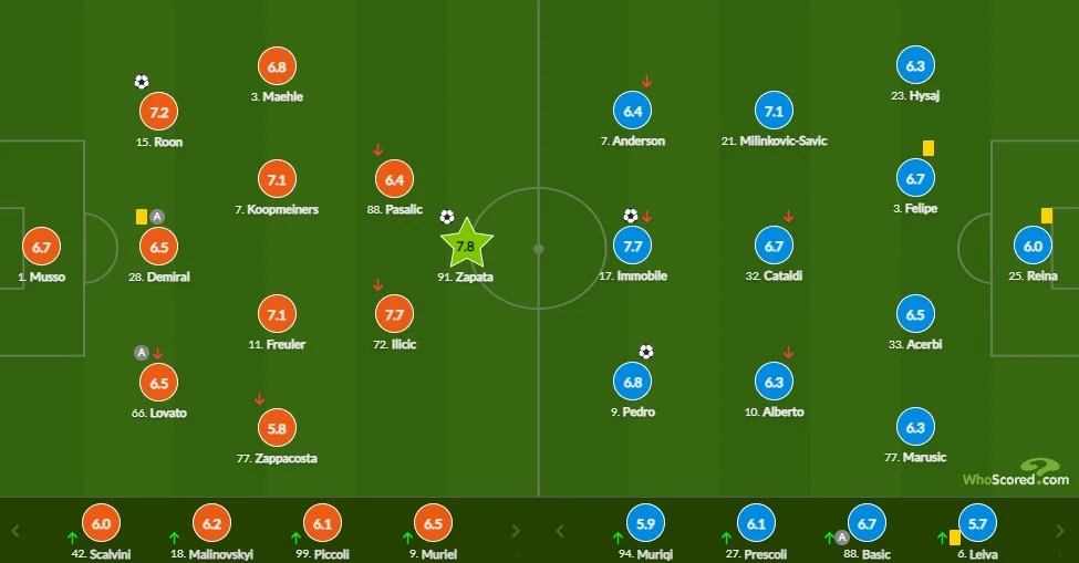 Заметим, что почти вся атака "нерадзурри" сегодня не поразила. За исключением разве что бомбардира Сапаты. Тот же Иличич полностью растворился, а Муриеля, который также выходил на смену, подвела точность. В общем, Малиновский и Ко оказались заложниками нестабильности нынешней Атланты, чередующей классные матчи с откровенными провалами. Против симпатичного Лацио было где-то посередине.