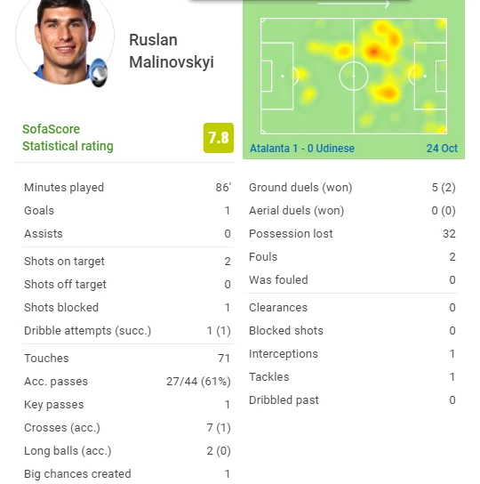 Малиновский с голом и лучшим баллом рвется в сборную Украины – трансформация Руслана, неважная форма Аталанты