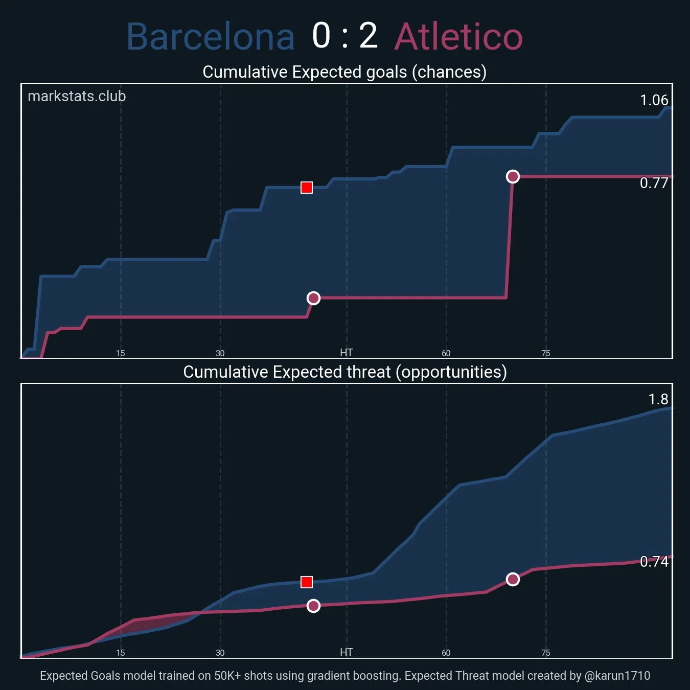 С другой стороны, Атлетико выглядел симпатично до перерыва, играя на равных и в конце концов подловив соперника на ошибке. Вот только Диего Симеоне испугался собственного успеха, сев в низкий блок сразу после перерыва – как следствие, Барселона чудом не уничтожила мадридцев вдесятером. Моментов для камбэка было достаточно.