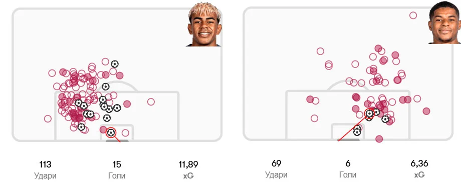Ямаль является лидером Барселоны в ЛЧ по количеству успешных обыгрышей 1-в-1 (37 штук), по ударам (32) и передачам под удар (20). Только Фермин Лопес провел больше результативных действий в турнире, чем Ламин (10 против 9).