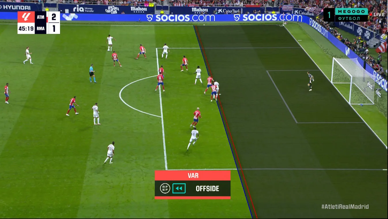 Как бы там ни было, план Карло Анчелотти провалился. В стартовые 30 минут Реал даже не имел моментов или хотя бы намеков на них, а вот подопечные Диего Симеоне открыли счёт уже на 187-й секунде. Лино открылся на левом фланге, качнул Васкеса и исполнил подачу в центр штрафной – Мората же отклеился от Алабы и замкнул в дальний угол. 1:0!