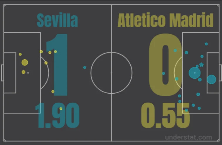 Мадридцам нельзя было терять очки в этом поединке, но они вообще проиграли его. Причем поиграли по делу – Атлетико за весь матч создал всего два реальных момента в завершающей части второго тайма. В целом же, за 94 минуты "матрасники" провели девять ударов, суммарная острота которых едва дотянула до половины ожидаемого гола. Большинство из них стало следствием различных отскоков. Севилья же только за первый тайм провела 12 выстрелов.