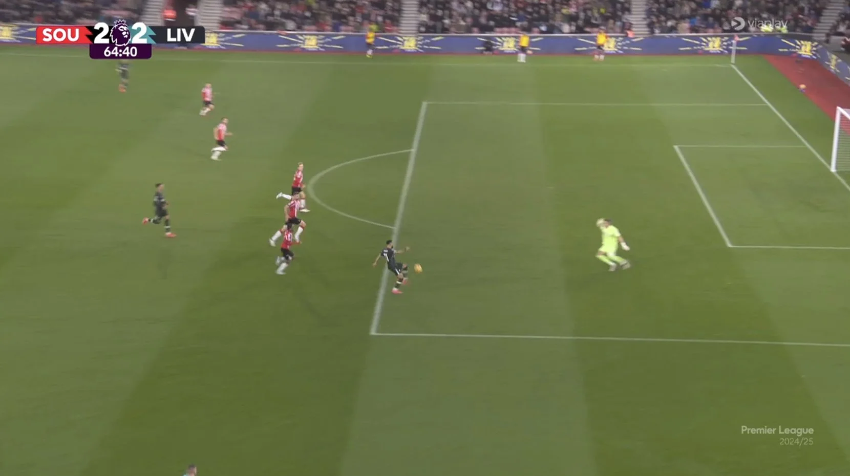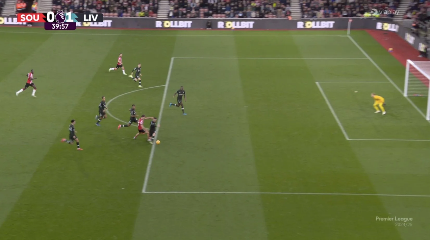 Каких-то 10 лет назад мерсисайдцы подписали Адама Лаллану, который сегодня выходит в составе "святых". Очень сложно гостям тушить быстрые пожары в переходных фазах. Брэдли и Конате за пару минут хватают по желтой за очевидные фолы в таких ситуациях. Ливерпуль в какой-то момент осаждает чужие владения, но удары не приходят после каких-то взрывных комбинаций, а лишь на индивидуальном мастерстве. Гакпо классно подал с левого края, Салах на углу вратарской снова стреляет прямо в 34-летнего кипера.