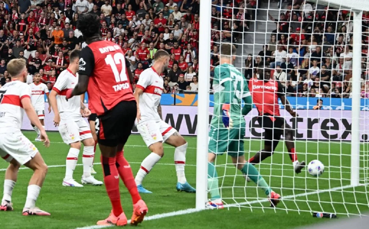 Именно Байер активнее начал матч и достиг своего уже на 11-й минуте. Голевую атаку организовал как раз новичок. Экс-капитан Жироны Алейш Гарсия роскошно подал на дальнюю штангу, откуда Тапсоба сбрасывал мяч в ворота. Бонифейс на самой линии коснулся круглого и украл гол у партнера.
