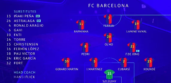 Ханси Флик и Симоне Индзаги в полуфинале Лиги чемпионов не стали изобретать велосипед, выставив максимально прогнозируемый старт. У Барселоны травмированного Левандовски продолжил менять Ферран Торрес, а Гави продолжает сидеть на банке под Ольмо. Бальде остается в лазарете, а вместо него продолжает выступать Мартин, для кого данный сезон является дебютным на взрослом уровне.