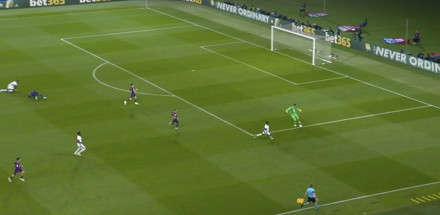 Еще через минуту Дюмфрис обыгрался в стеночку на фланге, влетел на край штрафной и мог пробивать, но вместо этого выполнил неудачный пас. Только теперь "блаугранас" проснулись – в частности, забегали Рафинья и Ямаль. Ближе к 80-м минутам на Монжуике наблюдали финты Зидана в исполнении Ламина и размены контратаками.