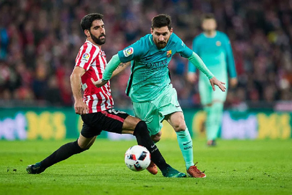 В первом матче 1/8 финала Кубка Испании "Атлетик" из Бильбао на "Сан Мамесе" победил "Барселону" со счетом 2:1.