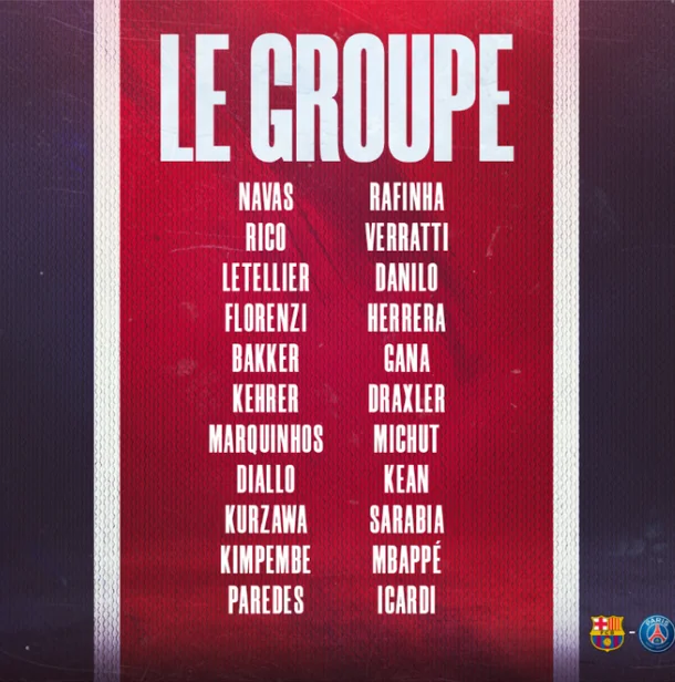 Неймар и Ди Мария залечивают травмы, поэтому не попали в список. Впрочем, у ПСЖ есть и приятная новость. Участие полузащитника Марко Верратти было под вопросом, но итальянец все же летит вместе с командой.