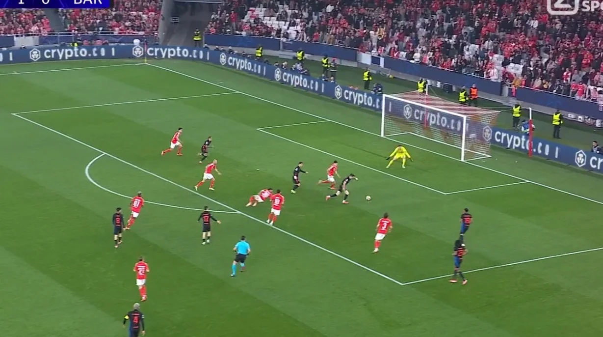 Снова следует отметить, как же легко лиссабонцы рвали фланги Барселоны, растягивали оборону и терроризировали кроссами. Казалось, что вот теперь "блаугранас" точно конец.