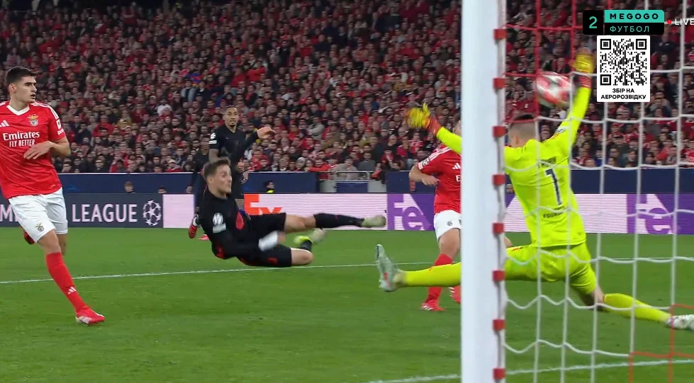 В первом тайме Бенфика настолько хорошо контролировала игру, что мяч даже не доходил до Анатолия. Тот отдал несколько передач (почти все – хорошие и точные, на разные дистанции), но выполнил один грандиозный сейв. Гави на 20-й минуте включил дриблинг и продрался в штрафную, оказавшись перед Трубиным благодаря удачному отскоку. Украинец не дал себя прошить!