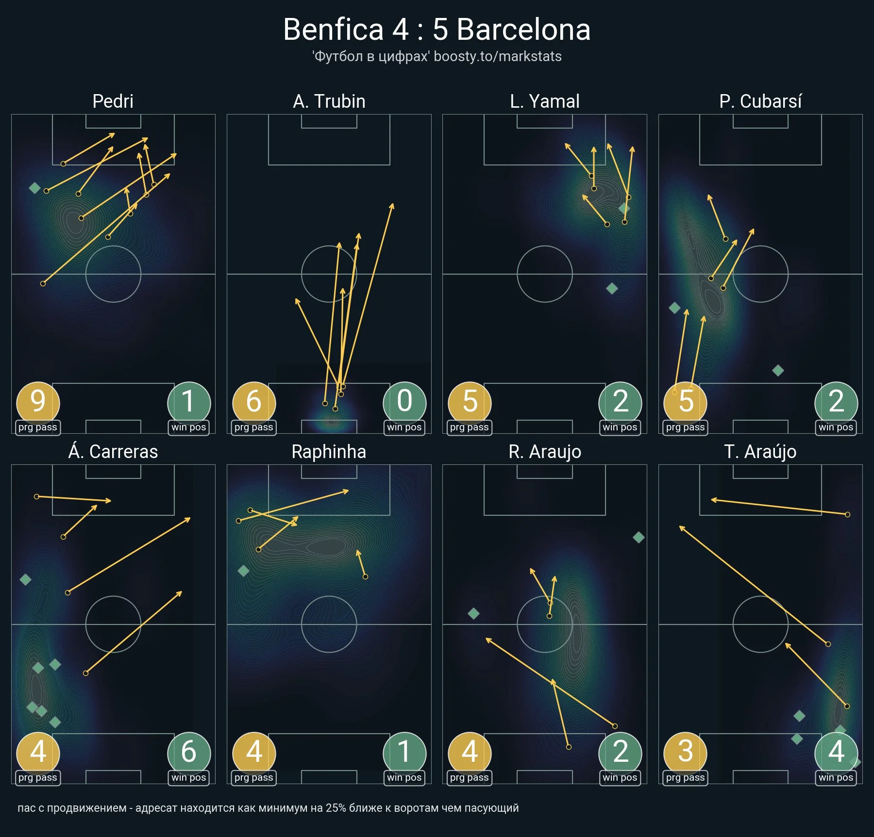 Особенно болезненным этот гол становится, если взглянуть на статистику передач. Трубин имел только 8 неточных пасов из 26-ти, выполнив 8 точных длинных переводов (из 16 попыток). По количеству точных передач с продвижением (6) наш земляк стал вторым после Педри.