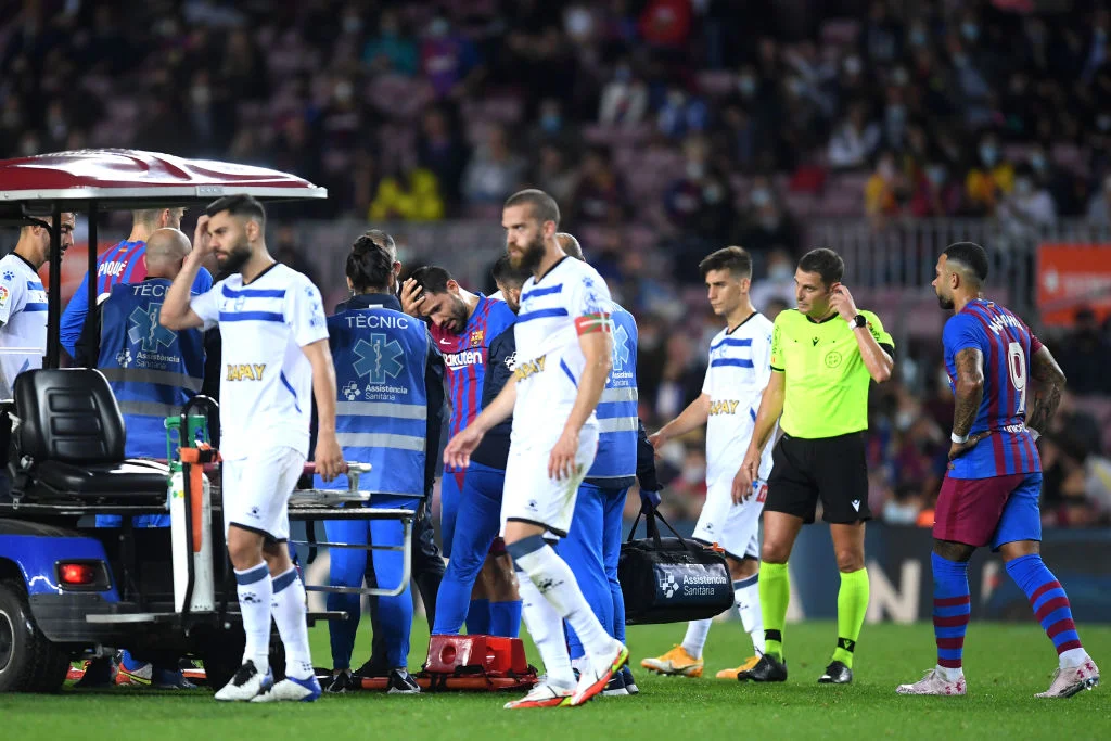 Обоим тренерам пришлось производить замены еще до перерыва. Сначала поле покинул защитник Алавеса Химо Наварро, вместо которого вышел Мартин Агиррегабирия. На 41-й минуте была очередь Серхио Агуэро. Аргентинец не смог продолжить игру после борьбы за мяч. В какой-то момент на газоне появились носилки и электрокар, но Агуэро сумел уйти к скамейкам запасных самостоятельно. Очень тревожная ситуация, ведь уже во вторник Барселоне играть против Динамо в Лиге чемпионов.