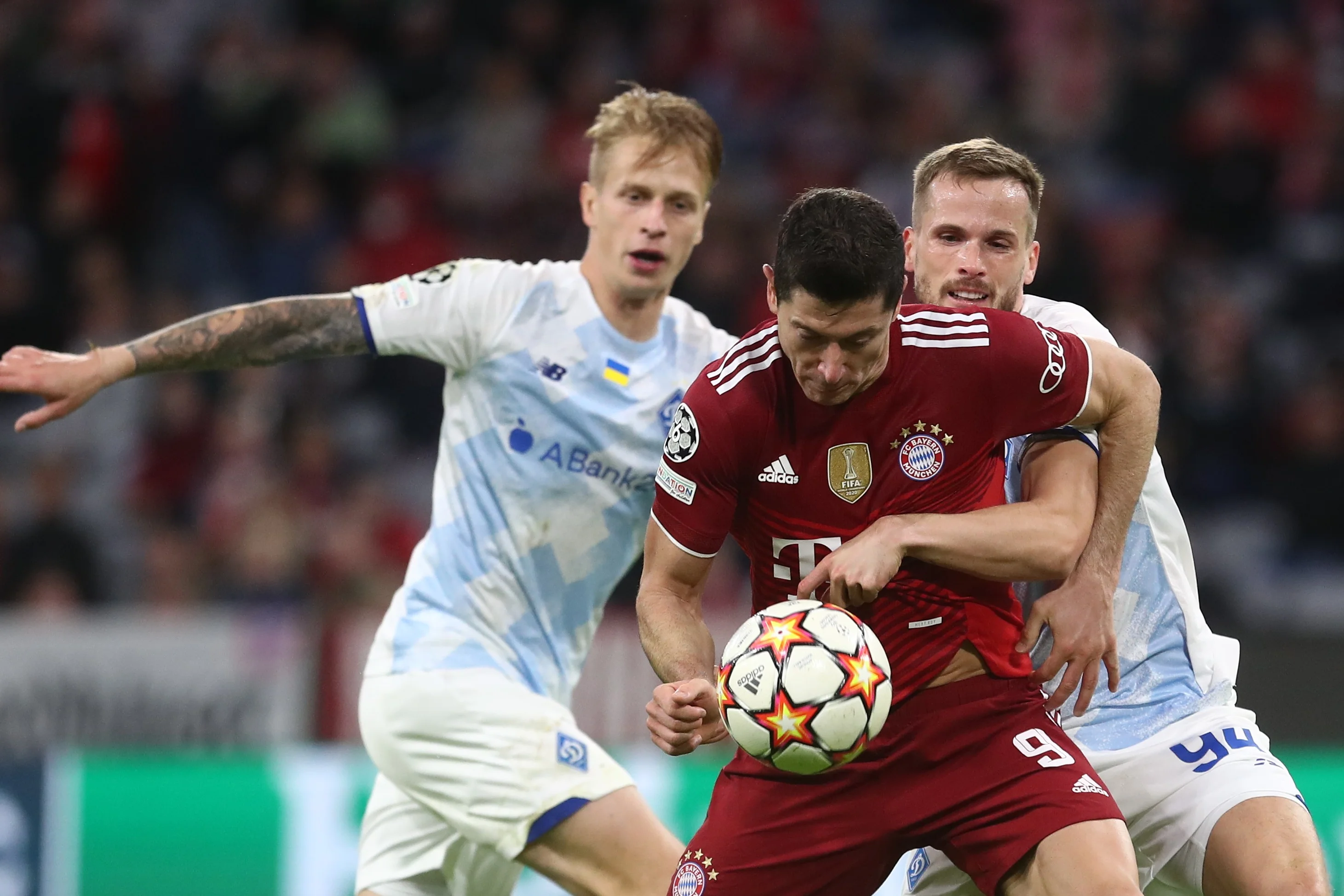 Динамо провоцировало высокий прессинг Баварии. Часто это приводило к обрезкам и острым выпадам на ворота Бущана. Впрочем, иногда удавалось строить перспективные атаки. Защитники искали нацеленными передачами Гармаша и Шапаренко, а те цеплялись за мяч и откидывали партнерам.