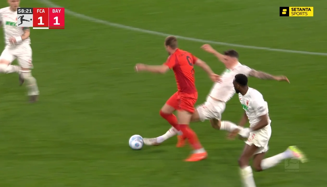 Еще более досадным стал стандарт, который назначили за этот фол – именно с него Бавария и забила победный гол. Киммих перевел на Олисе, тот подал с правого фланга на линию вратарской, а Кейн замкнул. 1:2 Аугсбург остался в меньшинстве и должен был отыгрываться.