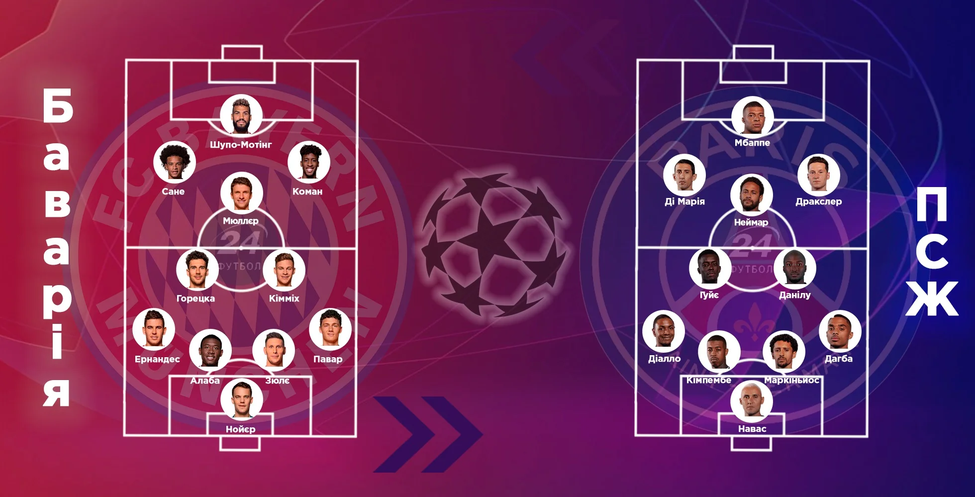 У Почеттино потери были еще более фееричны. Из-за травм вылетели Курзава, Бернат и Икарди, в списке дисквалифицированных оказался Паредес, а коронавирус скосил Вератти и Флоренци – последние три футболиста критически важны для футбола парижан. Кроме того, французские СМИ писали о конфликте команды с Неймаром, однако бразилец в основу попал. На фоне Баварии у ПСЖ выгодно отличалась скамейка запасных, на которой нашлось место Кереру, Эррере, Кину, Сарабии и Рафинье.