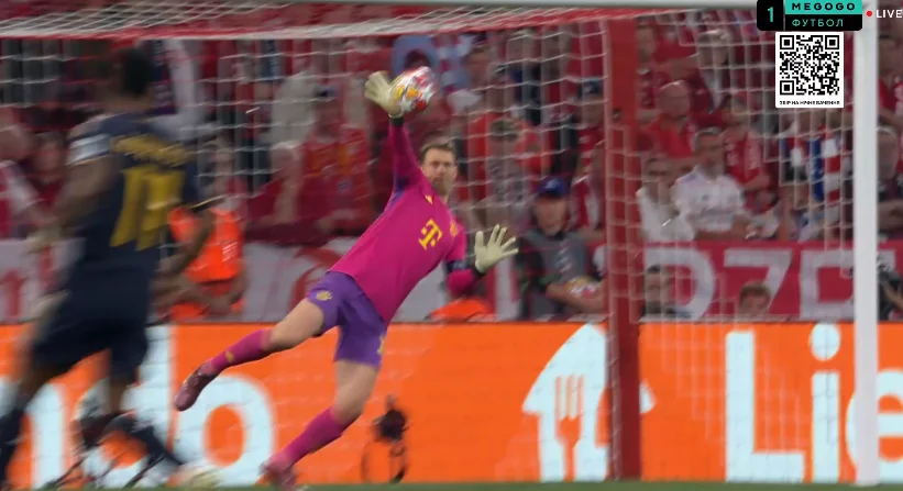 Впрочем, Реал продолжал контролировать игру. Более того – на 51-й минуте "сливочные" могли удвоить свое преимущество усилиями Крооса, которого на левом фланге нашел Беллингем. Тони сместился к углу штрафной и бахнул в дальнюю девятку, однако Нойер выполнил эффектный сейв!